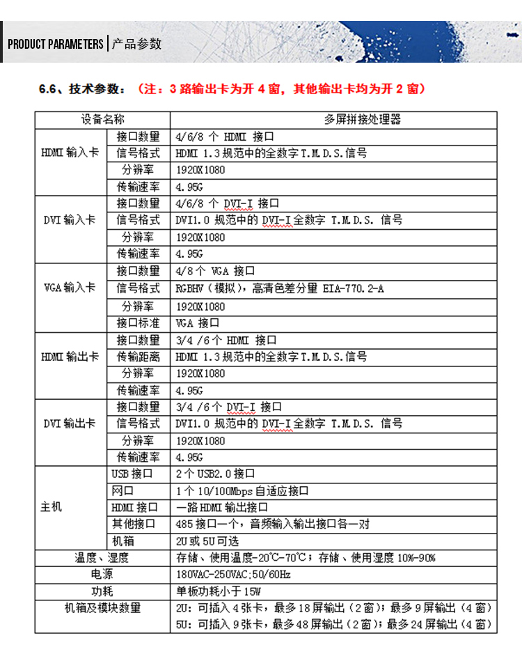 輸入板、輸出板、切換板、風扇、電源、防塵網等主要模塊均為插卡式設計,為日常使用及維護帶來了極大的方便。